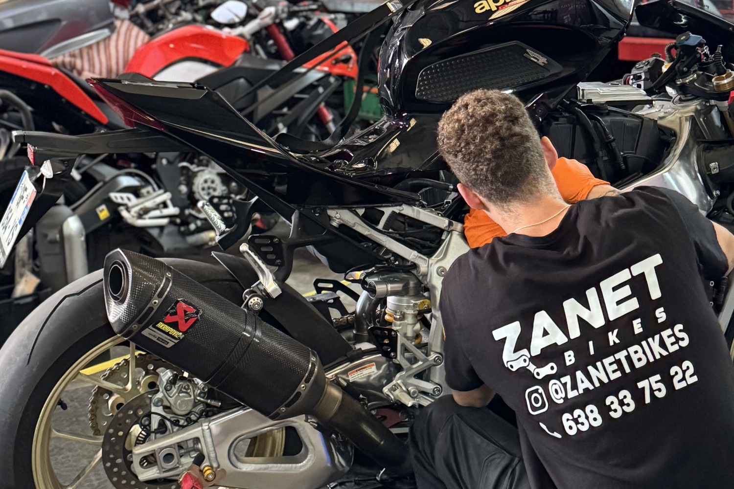 Taller Zanet Bikes es tu especialista en mecánica de motos en Valencia. Con taller físico en la ciudad, ofrecemos servicios de mantenimiento, reparación y diagnóstico para todo tipo de motocicletas, con especial dedicación a las motos deportivas.
